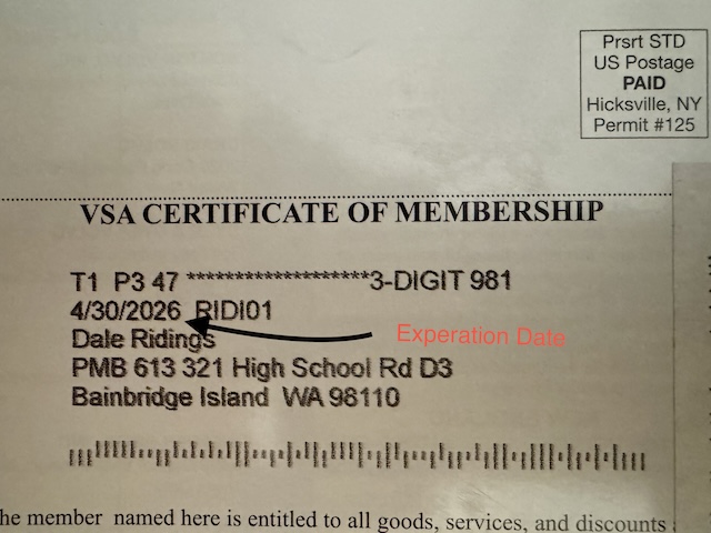 Your membership expiration date and member ID can be seen on the back of your VSA magazine.